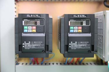 4、采用歐姆龍變頻器控制進(jìn)料輸送、出料邊封輸送、放膜輸送及收膜輸送的電機(jī);采用松下伺服電機(jī)控制橫封切刀,保證封切定位精確及封切線條美觀,所有裝置均可變頻調(diào)速,包裝速度可達(dá)到30~60包/分鐘。